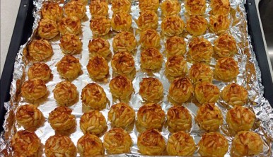 Con esta receta podrás hacer sobre unos 50 panellets de piñones. Primeramente cocemos las patatas con piel en