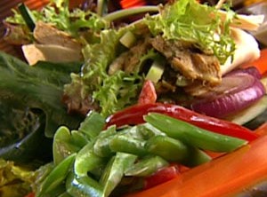 Primeramente calentamos la mantequilla en una cacerola y agregamos el brócoli, las judías verdes y los guisantes, salpimentamos