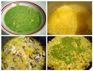 Risotto de marisco con pesto
