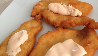Ponemos el aceite a calentar en una sartén ancha. Salpimentamos los filetes de pollo y los pasamos por