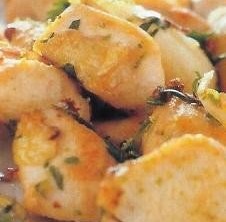 Primero ponemos a calentar el horno a 160º. Pelamos y cortamos las patatas en rodajas gruesas. En una