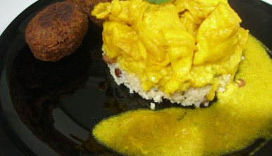 Primero fileteamos la pechuga de pollo y la salpimentamos. Rallamos el jengibre y lo ponemos en un bol