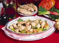 - Batimos aceite de oliva virgen con albahaca y un pellizco de sal. Servimos las milhojas de atún con el aceite de albahaca por encima.
