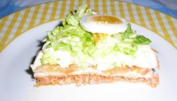 - A continuación preparamos la salsa. Ponemos 30 g de mantequilla en una sartén pequeña, junto el aceite. Mientras se calienta picamos bien fina la cebolla y la rehogamos en la sartén unos minutos. Incorporamos entonces la harina y removemos hasta que burbujee. Agregamos la leche y revolvemos con una cuchara de madera hasta que espese. Salpimentamos y echamos un poco de nuez moscada.