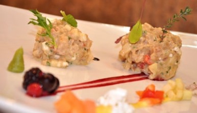 Tartar de atún rojo con soja, manzana, queso de cabra y frutos rojos