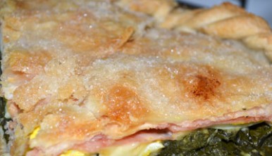 Precalentar el horno a 180º. Estirar una de las tapas para pascualina en una pizzera y apartar. Poner