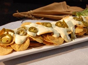 Fundimos a baño María el queso manchego y el queso crema, agregando leche y pimienta. Servimos los nachos